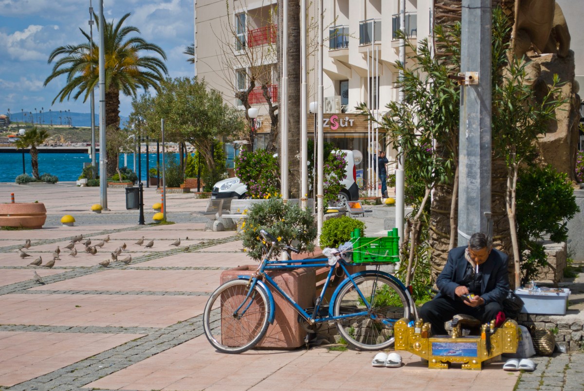 El ojo en Çesme Publicado 23 mayo, 2015 en 3695 × 2474 en El ojo en Çesme (fotogalería) ← Anterior Siguiente → El lustrabotas en la plaza central de Çesme, que une la rambla con la calle principal.