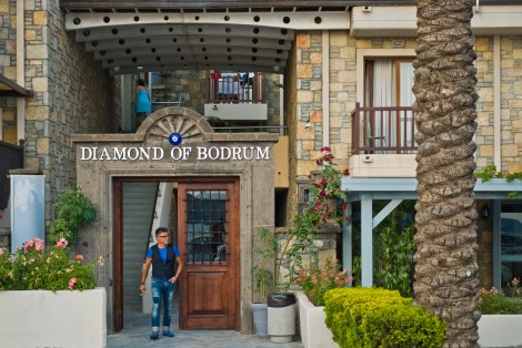 - Hay hoteles para todos los gustos, y turista con guita pa todos los gustos. Acá una foto del «DIamante» de Bodrum, frente a la playa.