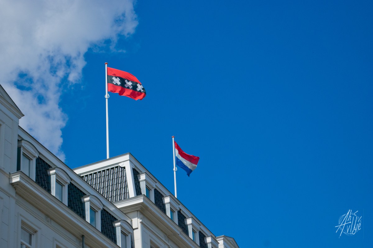 Ámsterdam tiene su propia bandera y es medio pirata. Al principio llama la atención por su color y las cruces, que la hacen un poco fatalista, pero después de tanto verla uno se acostumbra. Las cruces no se sabe bien de dónde vienen, pero aparentemente vienen de la cruz de San Andrés, un símbolo muy presente en la cultura anglosajona (está en otras banderas, como por ejemplo la de Escocia). Y el hecho de que sean tres refieren a las catástrofes que azotaron a la ciudad: inundaciones, incendios y plagas.