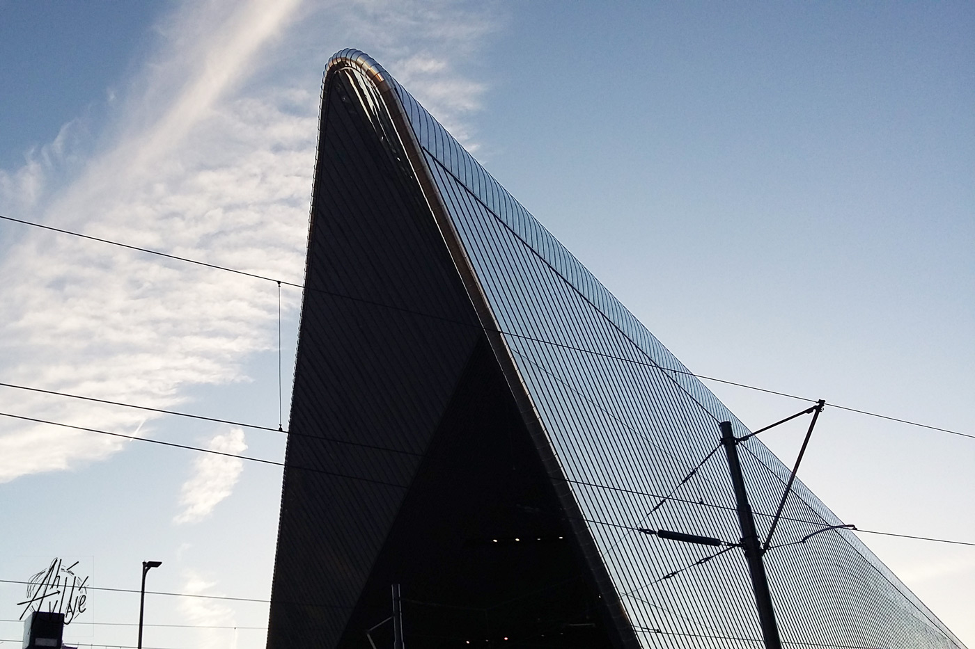 Centraal Rotterdam Publicado 13 septiembre, 2016 en 1400 × 933 en Postales de Rotterdam ← Anterior Siguiente → La estación central es lo primero que uno ve todo el que llega a la ciudad y no lo hace en auto. Un edificio moderno y que llama la atención con su techo plateado y quebrado. Estación central de trenes