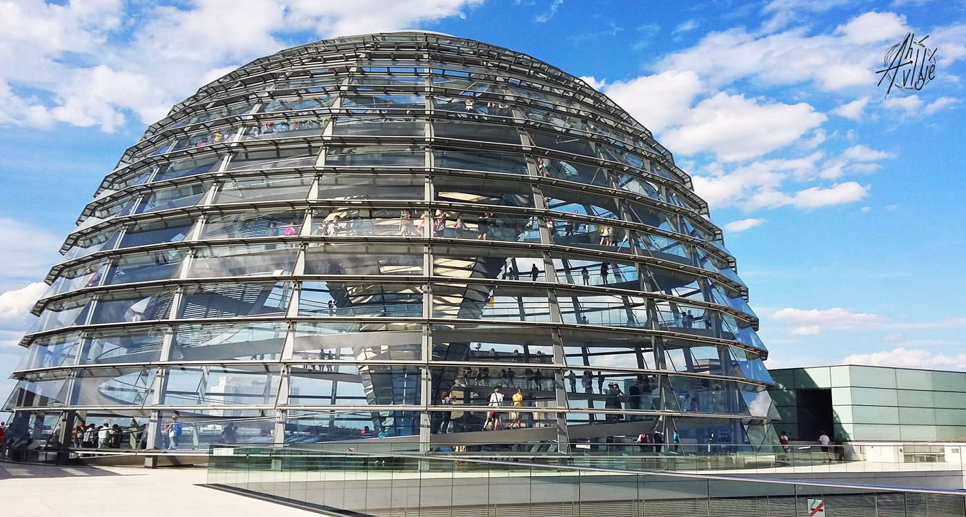 Semiesfera del Recihstag Publicado 25 septiembre, 2016 en 1400 × 749 en 5 claves para entender el Reichstag ← Anterior Siguiente → La visión externa del edificio es de una semiesfera transparente, donde se ve a la gente ascendiendo en su interior. Semiesfera del Recihstag
