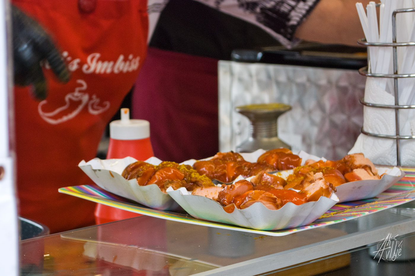 El currywrust Publicado 25 septiembre, 2016 en 1400 × 933 en Berlín en fotos ← Anterior Siguiente → El currywrust es una de las comidas callejeras típicas de Berlín. Es simplemente unas salchichas con curry, pero bueno. Nadie dijo que la comida tradicional tenía que ser compleja. Currywrust