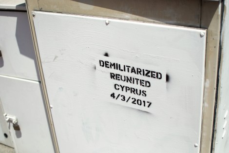 - Stencil pidiendo la reunificación desmilitarizada de la isla, del lado griego de Nicosia.