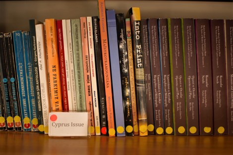 - En la biblioteca del café de Home For Cooperation se pueden econtrar libros con la temática del «asunto chipriota».