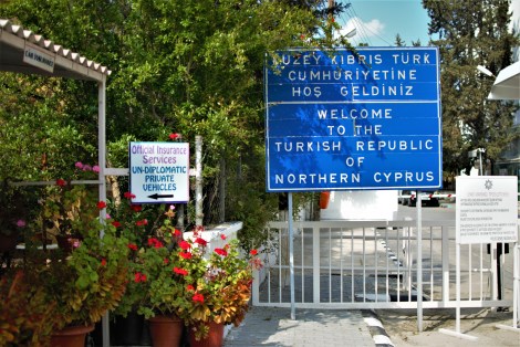 - En uno de los pasajes a Chipre del Norte se encuentra este cartel, junto a una oficina de alquiler de vehiculos, ya que la circulación de vehículos de un lado a otro de la isla no es tan sencilla.