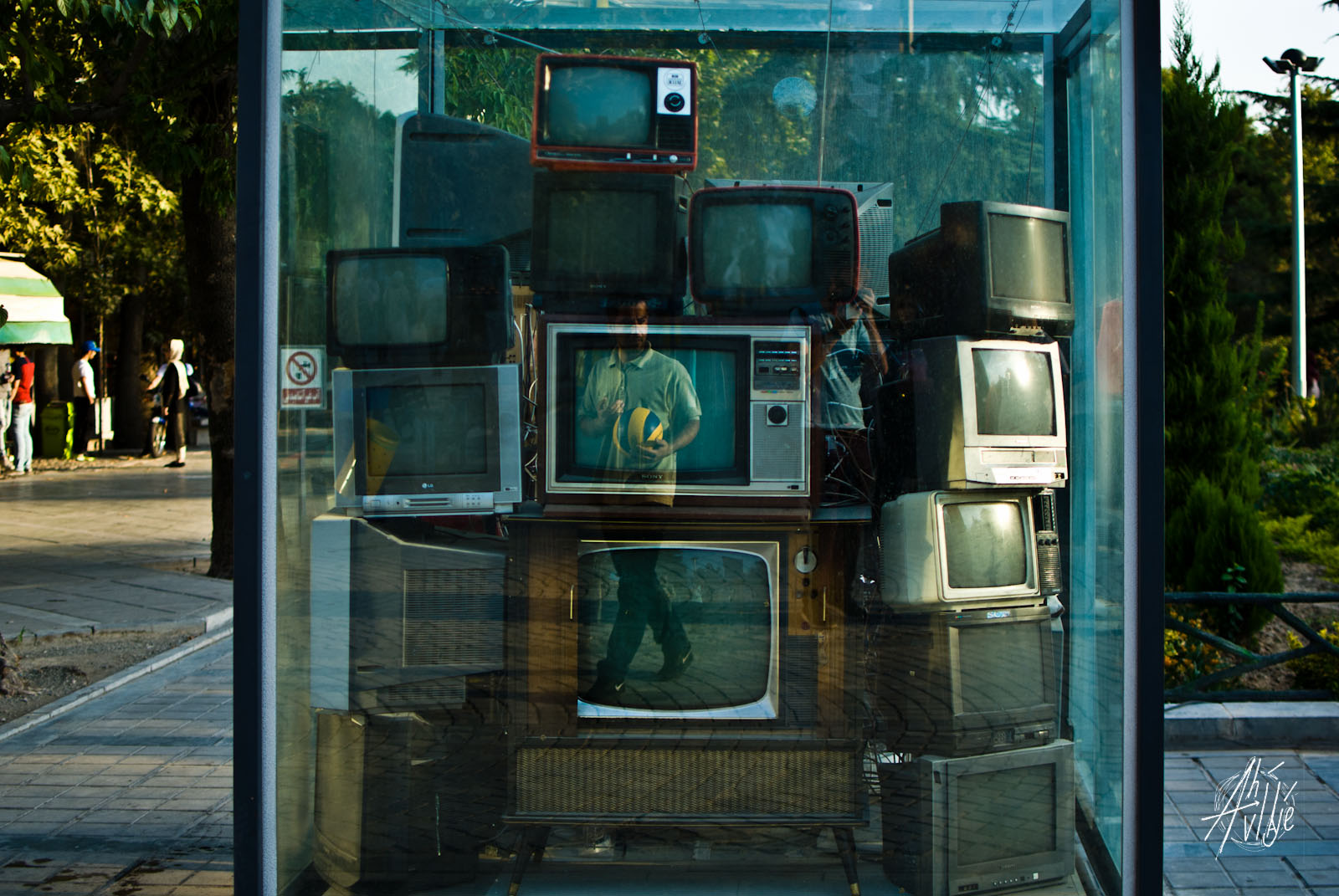 Voleyball on the TV Publicado 14 enero, 2018 en 1600 × 1071 en Por las calles de Teherán ← Anterior Siguiente → Una persona con una pelota de voleyball se refleja en una escultura hecha con televisores en un parque de Tehrán. Una persona con una pelota de voleyball se refleja en una escultura hecha con televisores en un parque de Tehrán.
