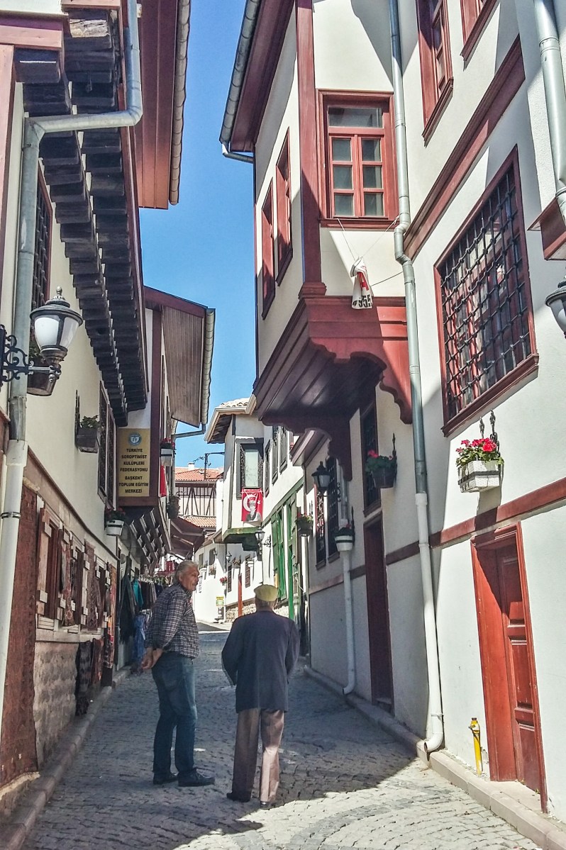 Hamamönü quiere decir «frente al Hamam (baño turco)» y es el barrio antiguo de la ciudad. Es el barrio cerca del castillo, con calles turísticas, museos y construcciones del la época otomana. En la foto, dos doños aplicando la estrategia de ponerse a charlar para descansar los pulmones en la subidita.