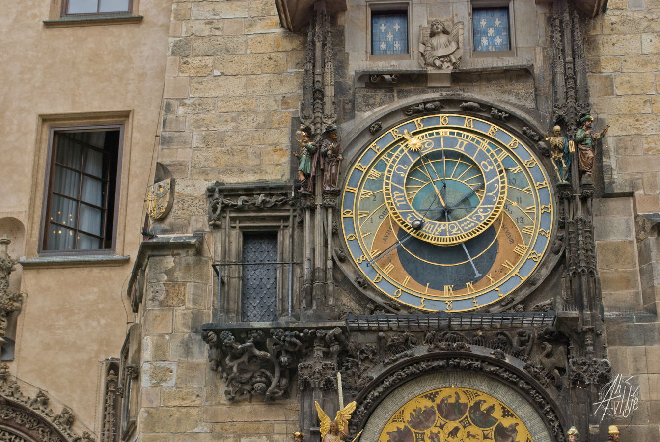 El reloj astronómico de Praga brinda un «espectáculo» a las horas en punto en la que salen figuras por las ventanitas. Es astronómico porque además de la hora, da el signo zodiacal, la fase lunar, y la estación del año, para los despistados.