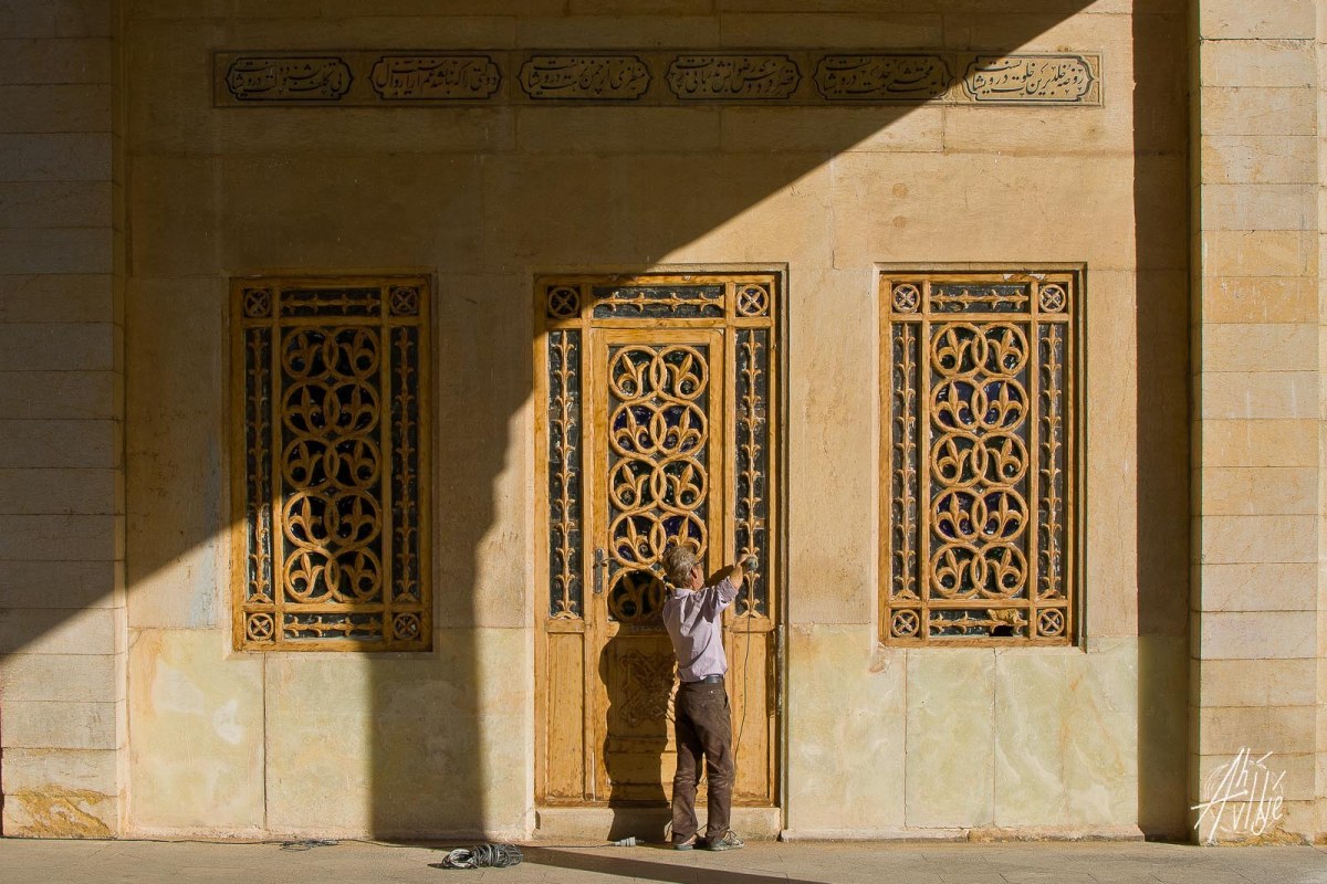 Sombras restauradas Publicado el 17 enero, 2018 en 1600 × 1067 Hombre repara la puerta de un edificio antiguo en Shiraz.